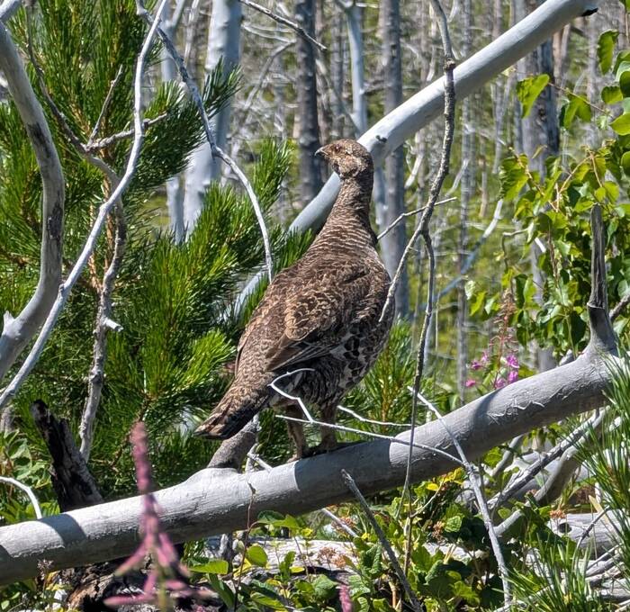 This mamma grouse had a bunch of babies following her in the brush. They were too camouflaged to photograph well, unfortunately.