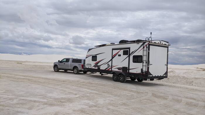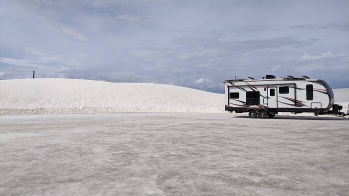 We would have loved to camp here and experience the landscape during a full moon, but alas--no overnight parking is allowed for RVs. We did enjoy bringing the camper for the day so that we could have lunch and take cover when it started to rain.