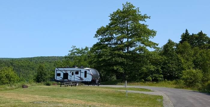 We were graced with another beautiful travel day for our move to the northeastern portion of Nova Scotia known as Cape Breton Island. We're not complaining about the nice weather, but it sometimes seems that we are more likely to have nice weather on travel days than on the staying-put days.